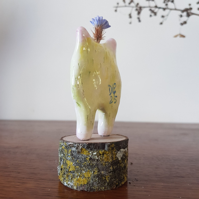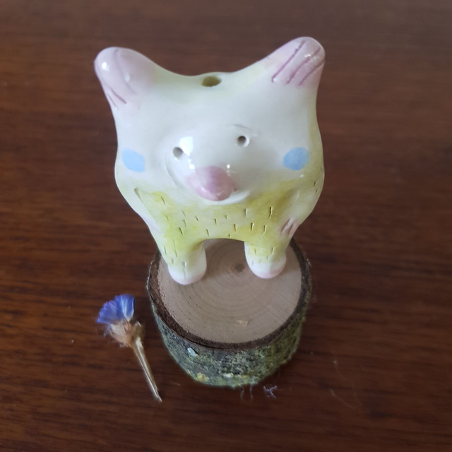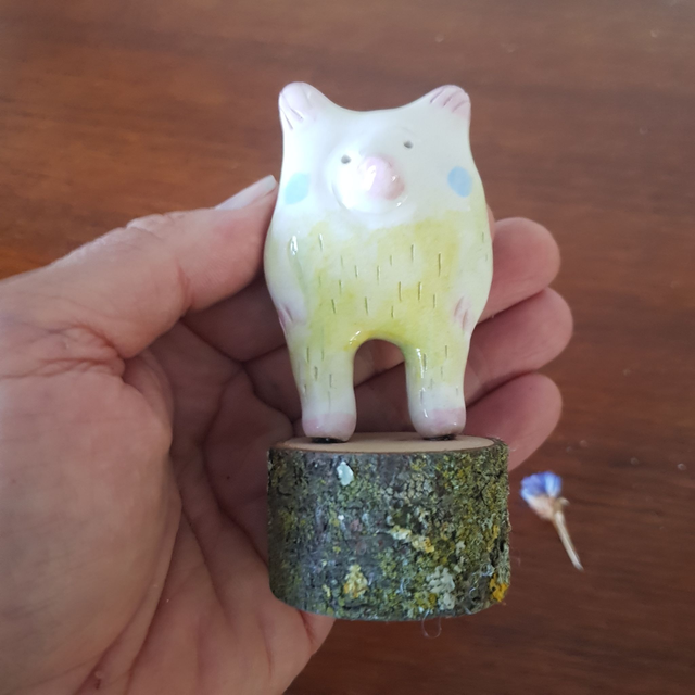 ce petit kawai, céramique en faïence (deux cuissons,1050° puis 980°) sur son socle en bois. création originale et piéce unique de 2025 , directement fabriquée dans mon atelier Drômois. Taille: 7cm (9,5 cm avec socle)