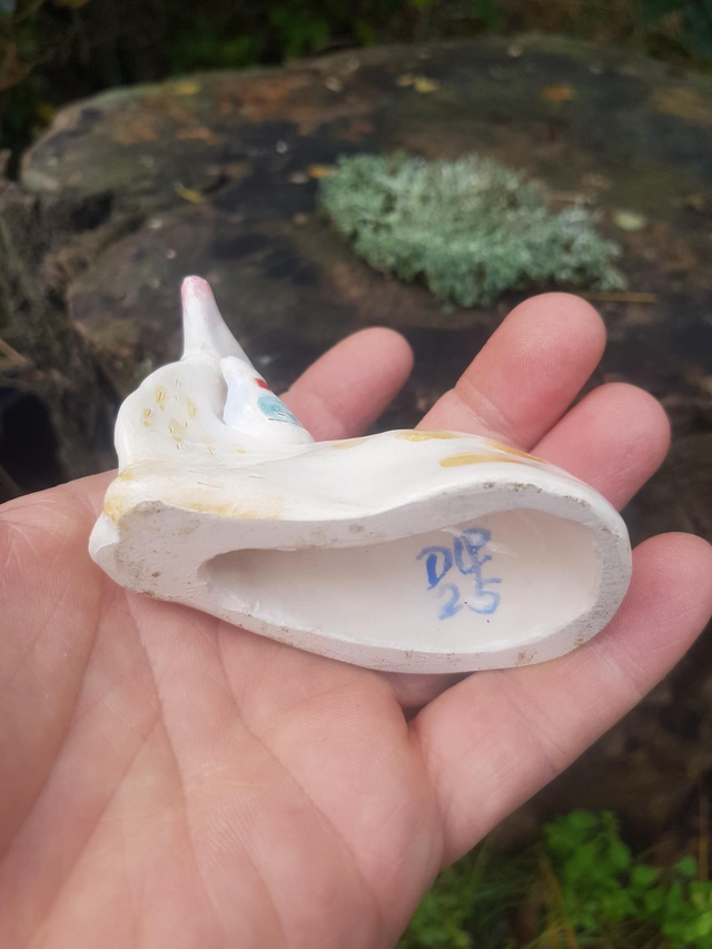 Biche avec son petit oiseau sur le dos, faïence 2025.H6cm. L 9CL. fait main, pièce unique
